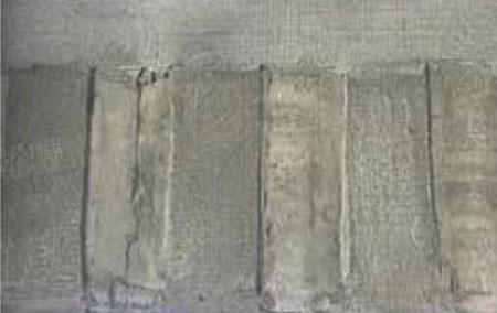 确保涂抹完成后,保证无高强钢丝布外漏及整个混凝土表面的平整度。需保证第一层和第二层砂浆在同一天进行施工。如果第二层砂浆未能在当天施工,第一层砂浆需用扫把或低压水枪进行粗糙化处理,直到骨料可见。